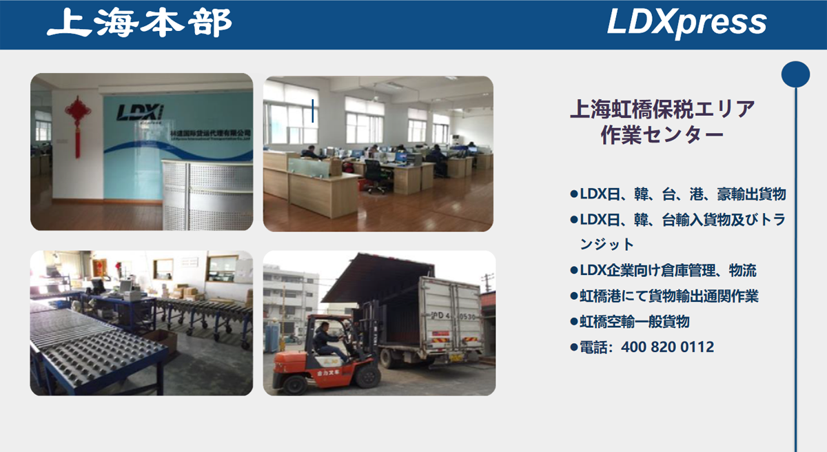 上海林道國(guó)際貨物運(yùn)送代理有限公司(LDX)は、1997年に會(huì)社を設(shè)立し、主要経営範(fàn)囲:國(guó)際貨物輸出入代理業(yè)務(wù)(日本、韓國(guó)、臺(tái)灣、香港、オーストラリア)、詳しく、空港における貨物の通関代行、ウェアハウス経営、國(guó)內(nèi)空輸、総合物流、B2Bに関わる倉(cāng)庫(kù)管理、國(guó)內(nèi)外荷扱い?荷捌き、越境eコマース向け総合サービス、日本FBA事業(yè)向け総合サービス、日本?韓國(guó)?臺(tái)灣?オーストラリアにおけるオンラインショップ向け小包の通関用務(wù)。
